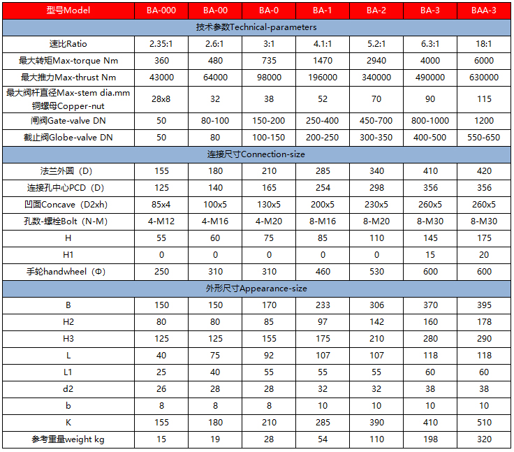 BA型多回轉(zhuǎn)手動傘齒輪蝸輪箱